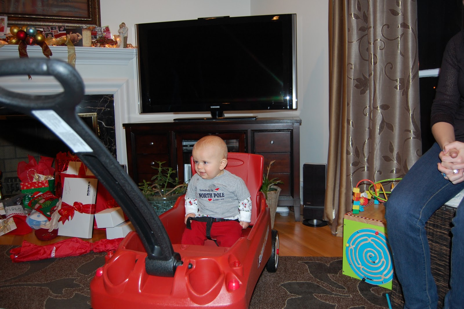 Molly and Jake got him a monogrammed "Baby's 1st Christmas" ornament. They also gave him his first savings bond, but Brisco was more interested in ripping up the paper, so we have to keep it in a special place.